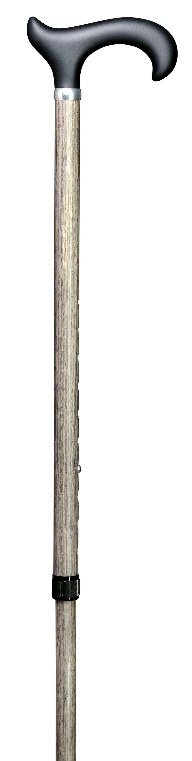 A very elegant, stylish walking stick made of sturdy light metal with real wood veneer in a bog oak look