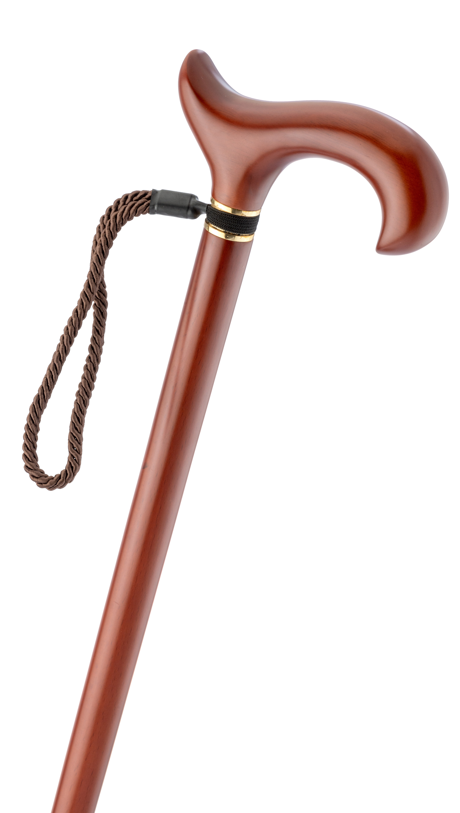 Gehstock KATTEGAT Derbygriff, Stock aus massivem Hartholz, mahagonifarben, Designring aus Messing inkl. passender Tragschlaufe und Gummipuffer, ca. 100 cm