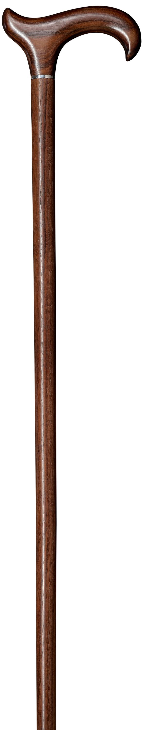 Der ergonomische geformte Derbygriff wird mit einem eleganten Chromring auf einen Schuss aus edelstem Nussbaumholz aufgesetzt.Um den besonderen Charakter und die ausgefallene Maserung des Holzes hervorzuheben, wird der Stock von Hand poliert und danach leicht geölt. Ein besonders edles Stück deutscher Stockmacherkunst und ein echter Handschmeichler.