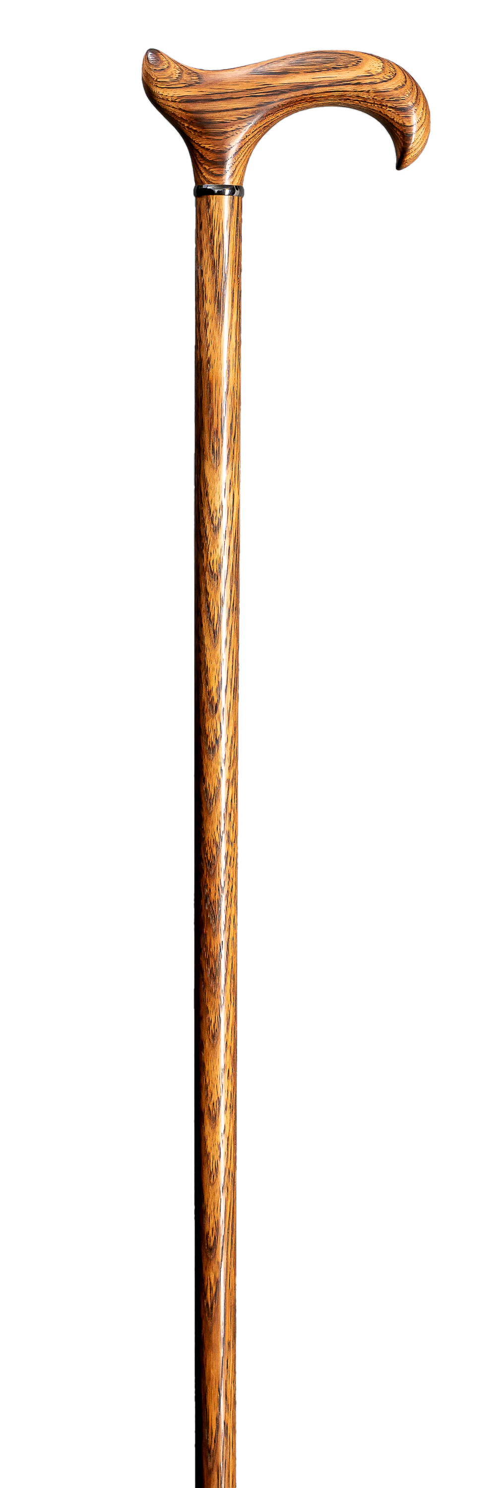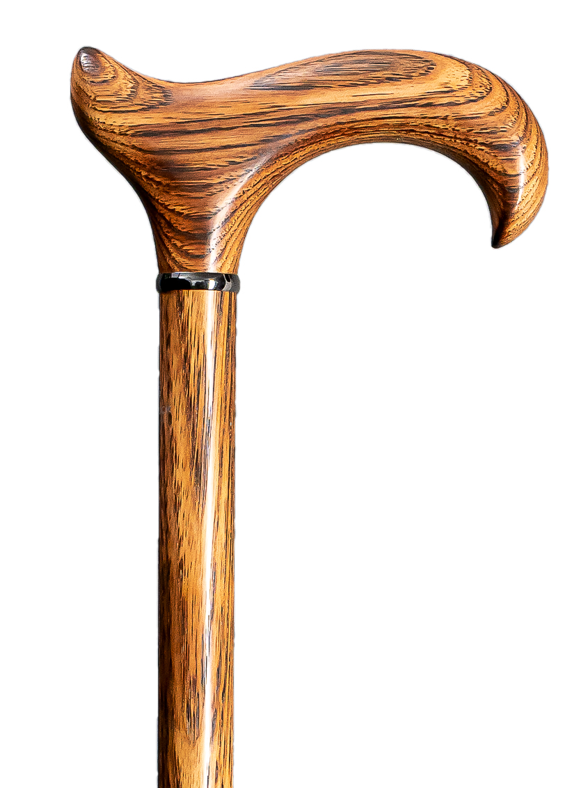 Dieser in aufwendiger Handarbeit hergestellte Gehstock ist eine Rarität und vereint hohe Stockmacherkunst mit exklusivem Edelholz. Der elegant geschwungene L-DERBY-Griff ist für beide Handseiten geeignet und kann durch seine abgerundete Nase bei Bedarf auch schnell über den Arm gehängt werden. Dieser Griff ist ebenso wie der stabile Schuss aus exklusivem, hellbraun gemasertem Eichen-Holz, welches durch eine spezielle Glanzpolitur veredelt und versiegelt ist. Weiteres kleines Detail ist der hochwertige Schwarz- Chromring, der den Schaft verziert. Ein Gummipuffer am Fuß gewährleistet eine bessere Haftung und unterstützt somit den sicheren Gang.